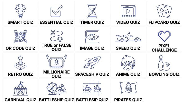 We offer a wide range including smart, practical, video, themed, and fun quizzes like pixel challenge and retro bits.